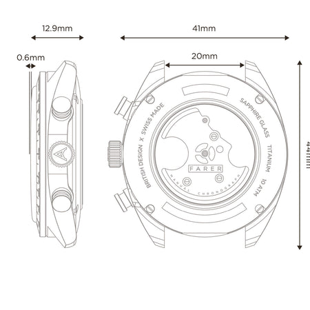Push-in titanium crown inset with a bronze cap embossed with the Farer 'A'